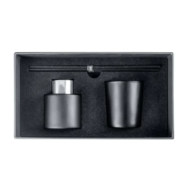- 1 × Scented Candle | 1 × Aroma Reed Diffuser | 6 × Black Diffuser Sticks